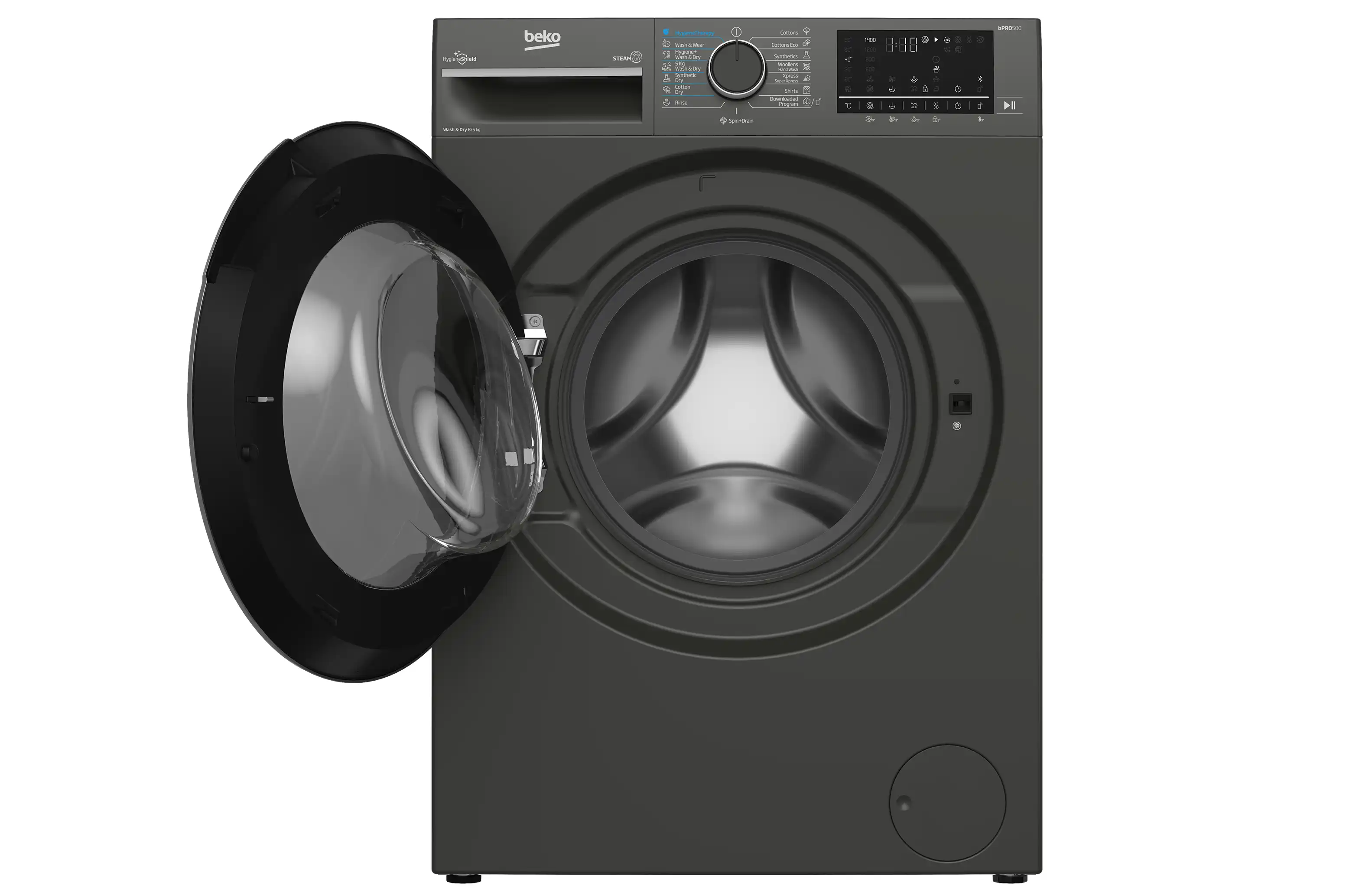غسالة ملابس فول اوتوماتيك بيكو تحميل أمامي، 10 كيلو، 1400 لفة، انفرتر، شاشة ديجيتال، رمادي مانهاتن - B3WFU501040MCI 1400 laps