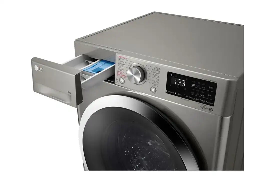 غسالة ملابس فول اوتوماتيك ال جي فيفاتشي تحميل أمامي 8 كيلو،غسيل بالبخار، انفرتر، شاشة ديجيتال، فضي - F4R3TYGCP