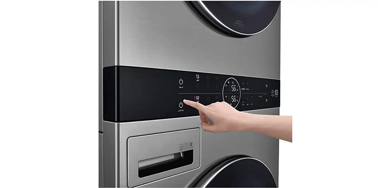 غسالة ملابس إل جي تاور ووش، 21 كيلو بمجفف 16 كيلو، فضي - FWT2116SS