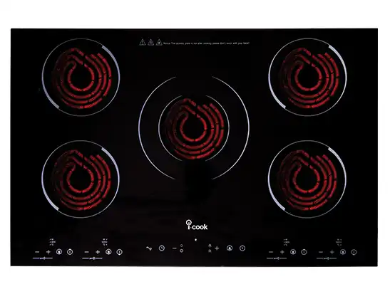 اي كوك مسطح بلت ان ، 5 شعلة كهرباء، 90 سم، اسود زجاجي - BH5090C-F