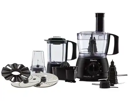 - الملحقات: مضرب بيض، وأداة عجن، و2 سكينة ستانلس ستيل للتقطيع والبشر، ومطحنة، وعصارة فواكة