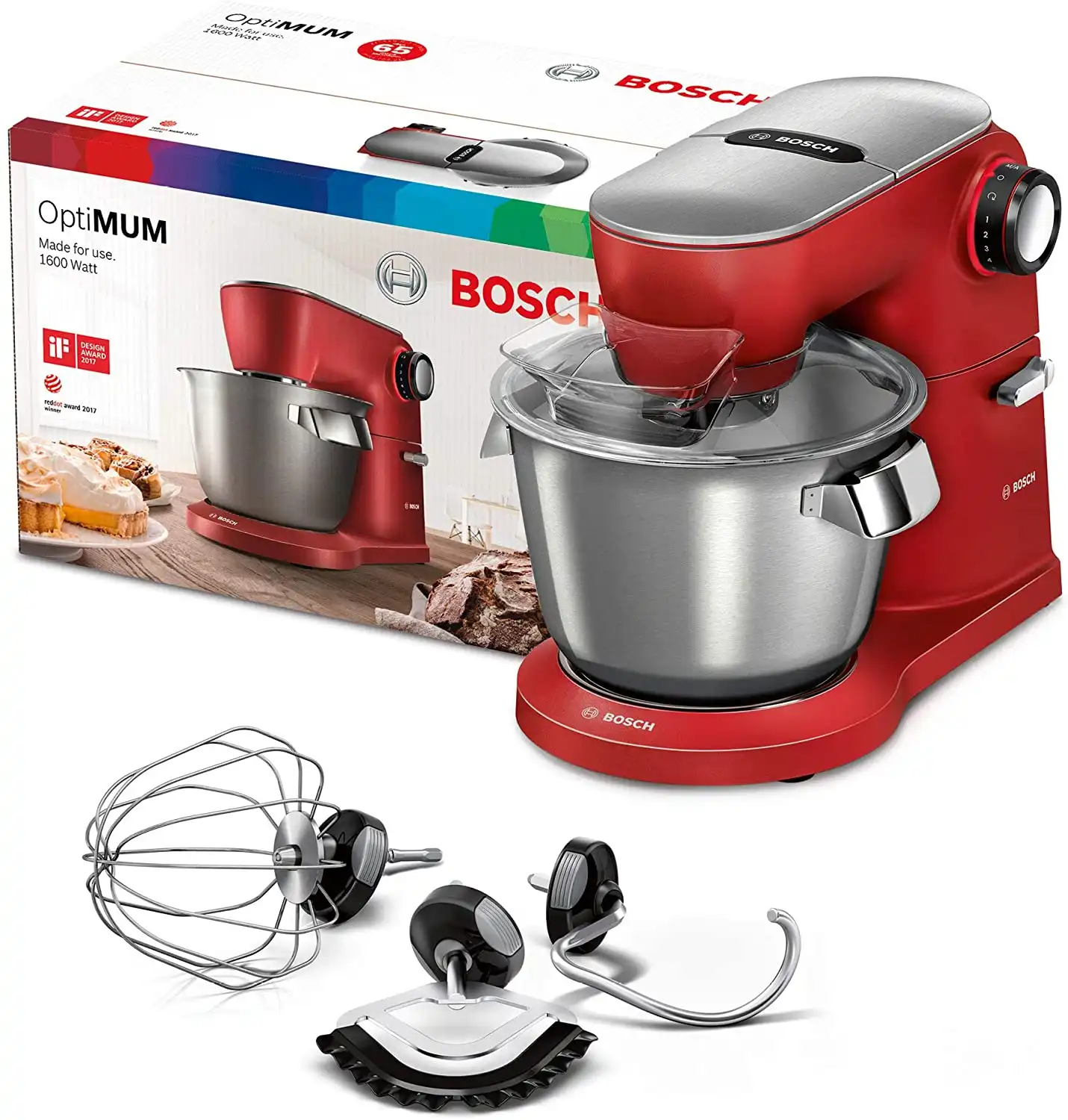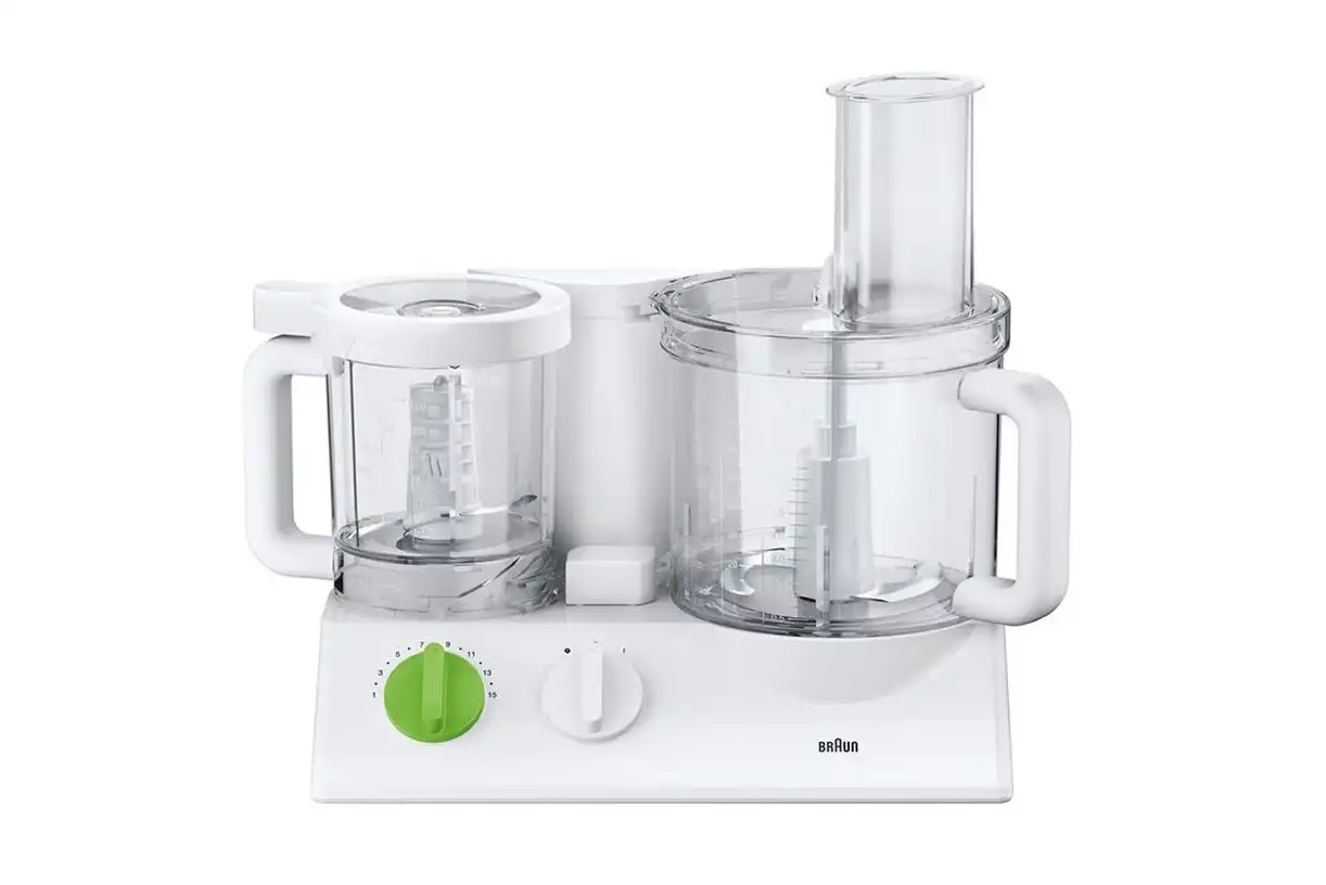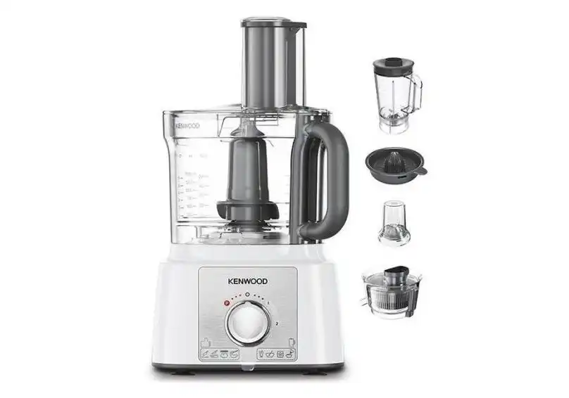 - الملحقات: مضرب بيض، وأداة عجن، و2 سكينة ستانلس ستيل للتقطيع والبشر، ومطحنة، وعصارة فواكة