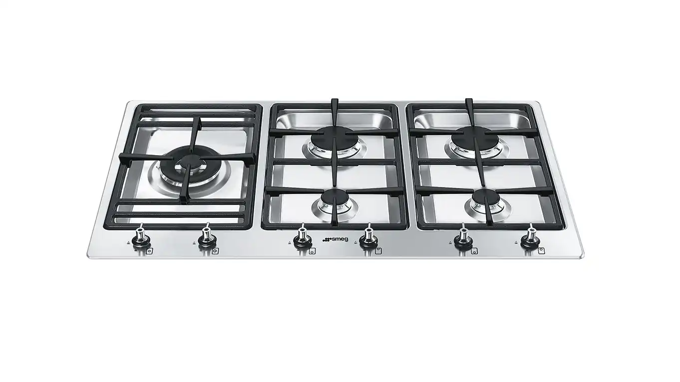 SMEG Gas Hob, 5 Burners, Cast Iron Stands, 90 cm, Stainless Steel - psa906-5