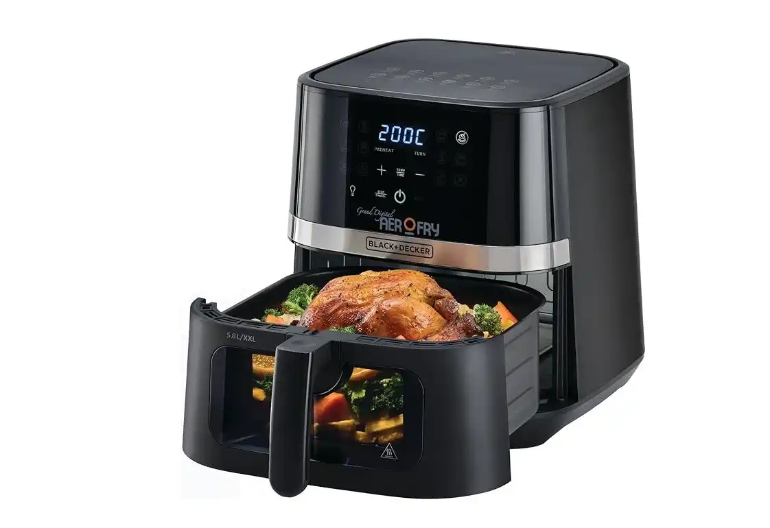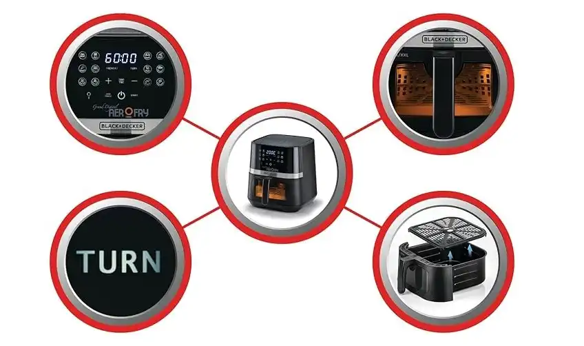 Black & Decker XXL Air Fryer, 5.8 L, 1800W, Touch Screen, 12-in-1 With Rapid Hot Air Circulation For Frying, Grilling, Broiling, Roasting, and Baking, Black - AF5800-B5