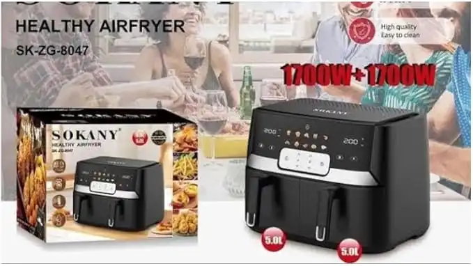 Sokany Digital Air Fryer, 10 Liters, 3400 Watts, Black - Sk-8047