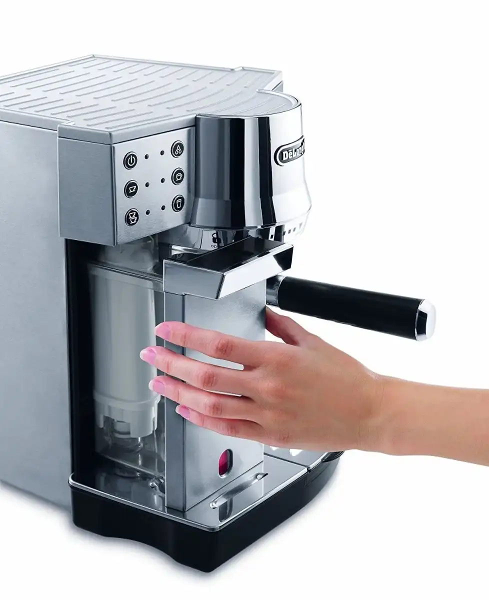 DeLonghi Pump Espresso & Cappuccino Maker, 1450 Watt, Silver - EC 850.M - International guarantee