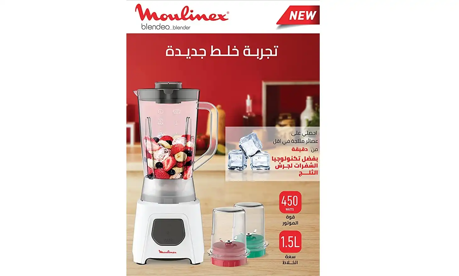 Moulinex Blendeo Blender With Grinder and Grater, 1.5 L, 450 W, White - LM2C31EG