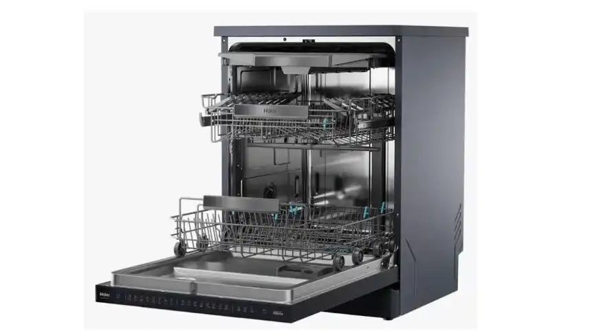 Haier Dishwasher, 8 Programs, 15 Place Settings, Stainless/Black - HDWE15-46BK6EG