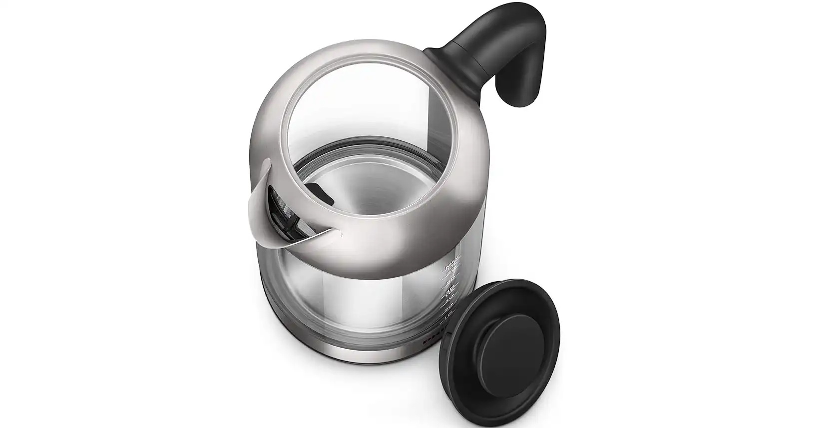 - A concealed stainless steel heating element ensures fast boiling and easy cleaning