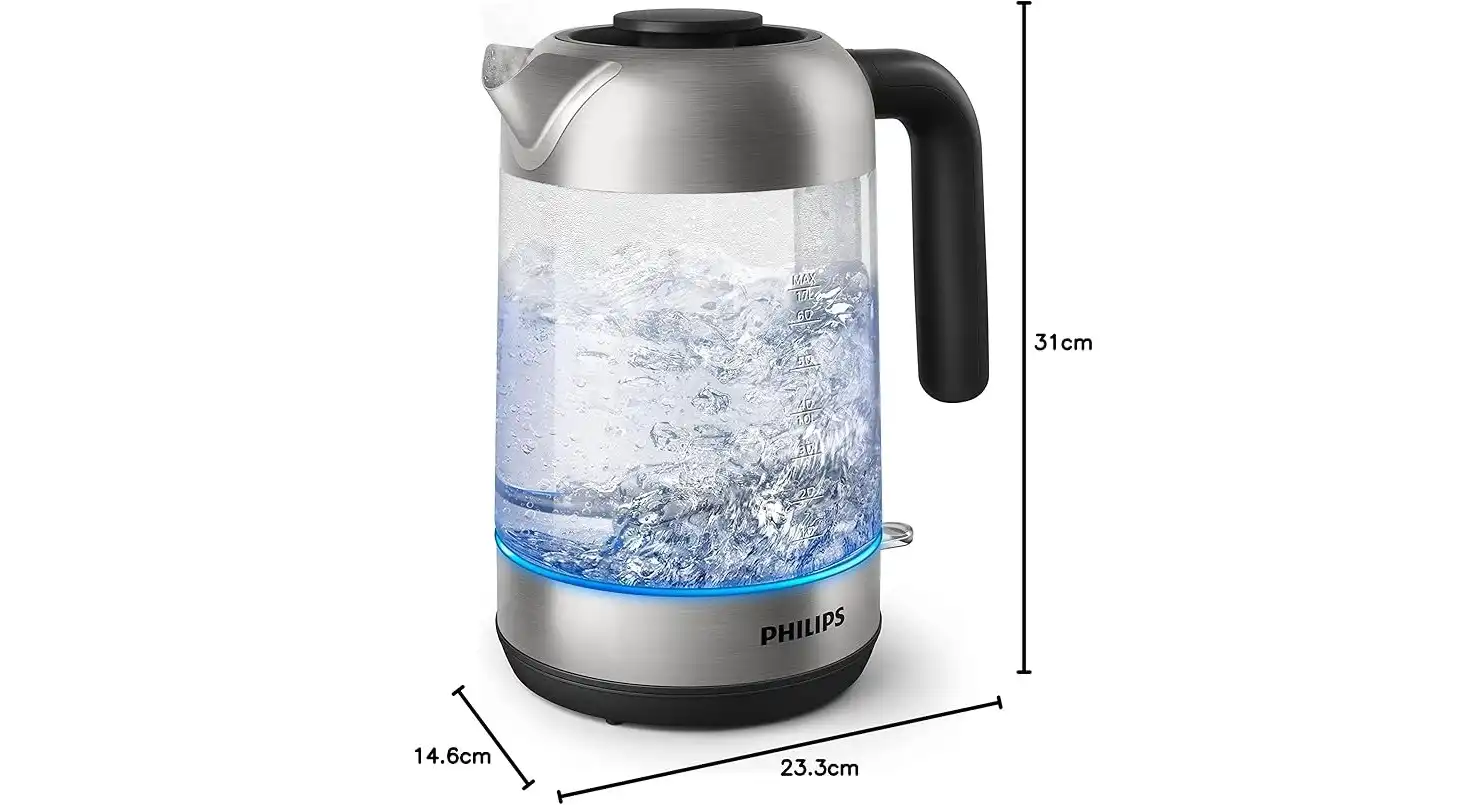 Philips Series 5000 Glass Electric Kettle, 1.7 Liter, 2200 Watt, Silver Black - HD9339/81