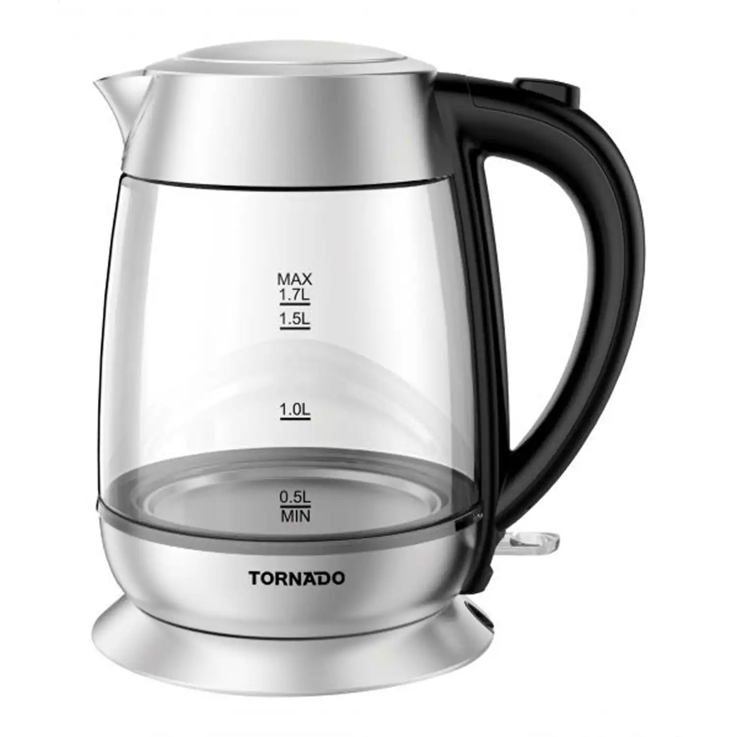 TORNADO Glass Kettle, 1.7 Liter, 1850-2200 Watt, Glass Transparent - TKG-2217SB