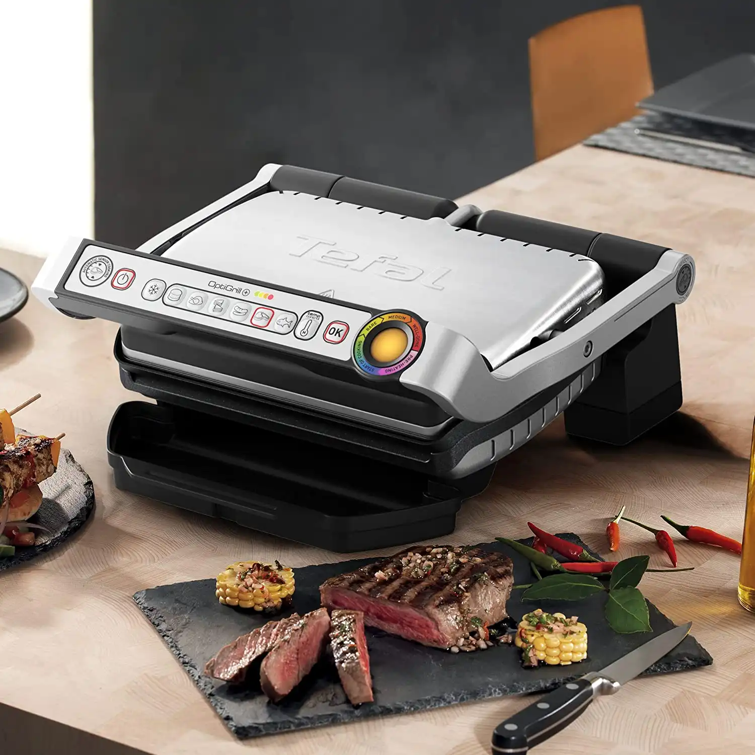 Tefal Optigrill Plus, Intelligent Health Grill, 2000 Watts, 6 Automatic Settings, Stainless Steel - GC712D12