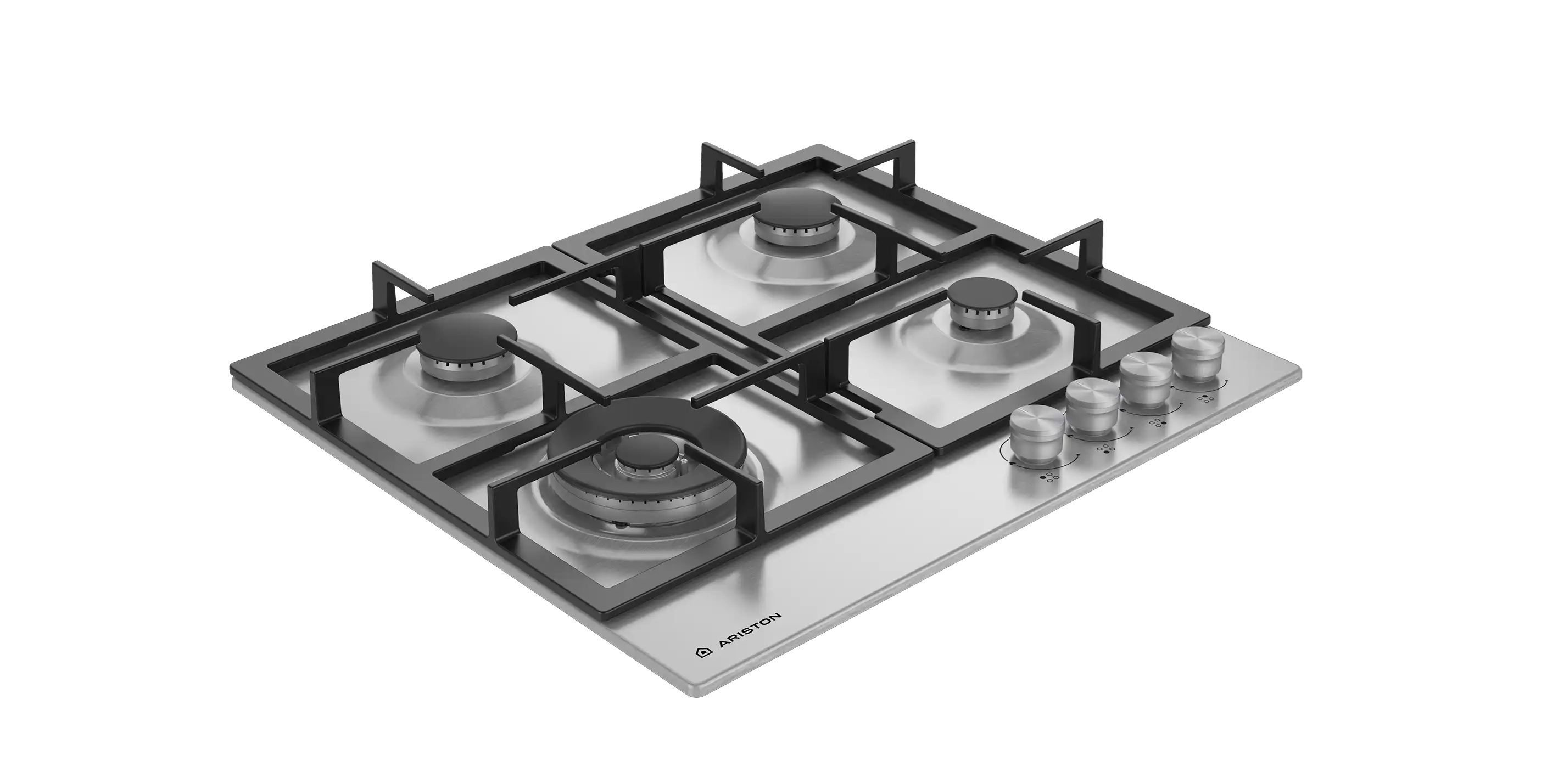 Ariston Built-in Hob, 4 Gas Burners, 60cm, Stainless Steel – ARH 6G4R22 W2XNA