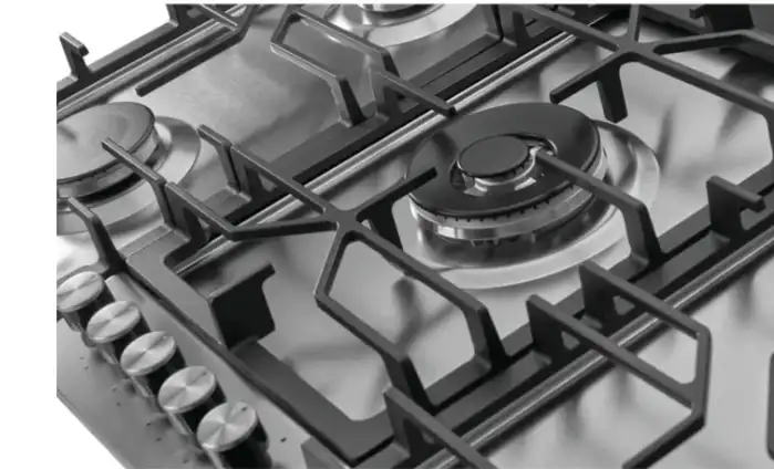 - Matt burner caps and heat-resistant stainless steel control knobs.