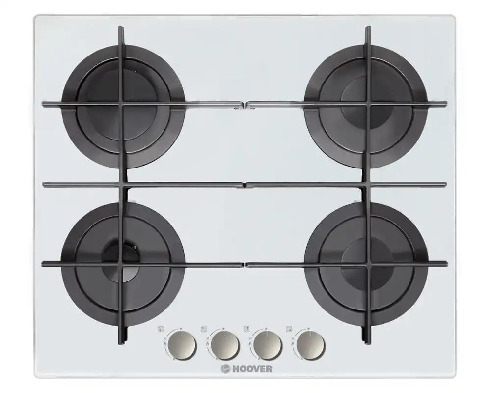 Hoover Built-In Gas Hob, 4 Burners, 60 cm, White Glass - HGV64SMTCGW