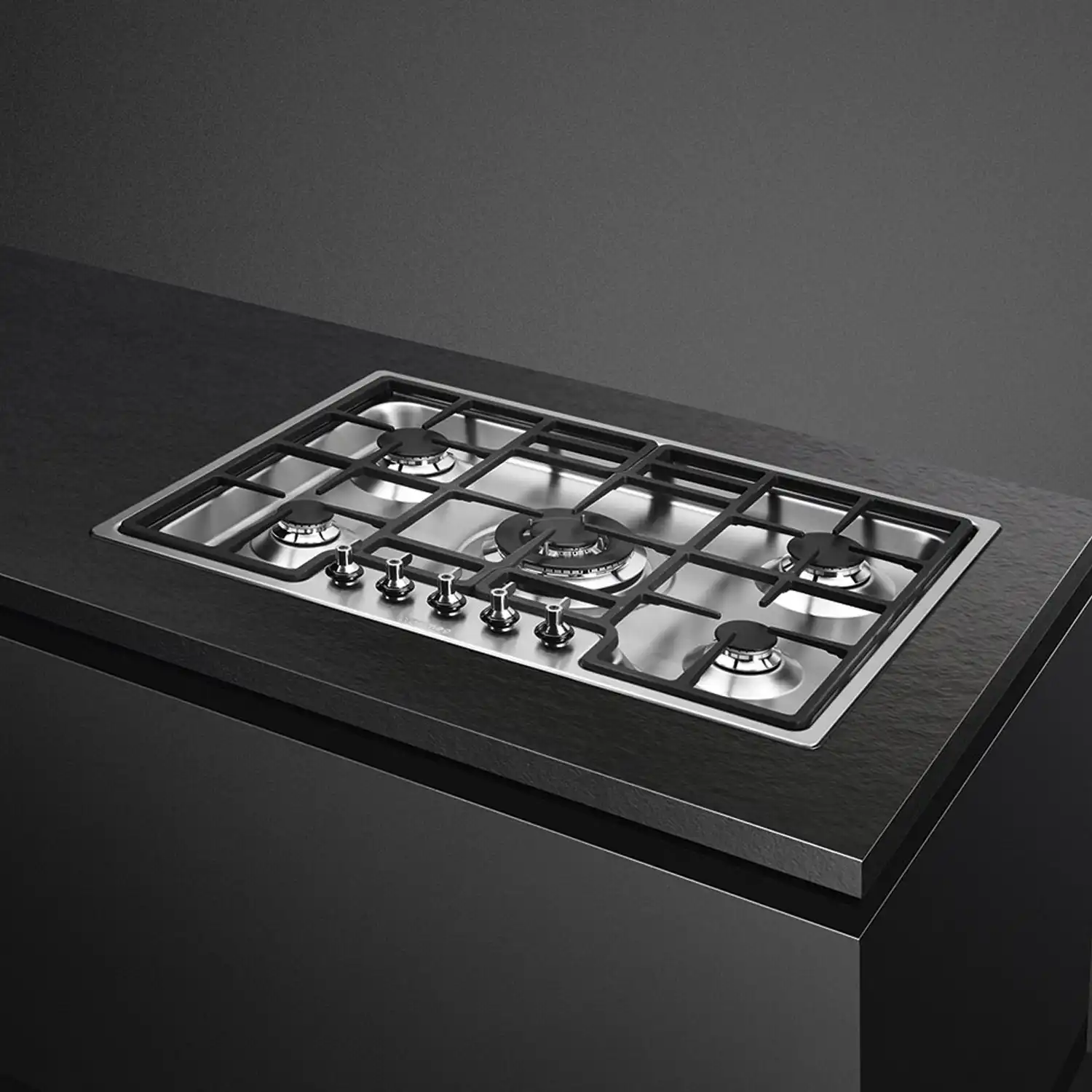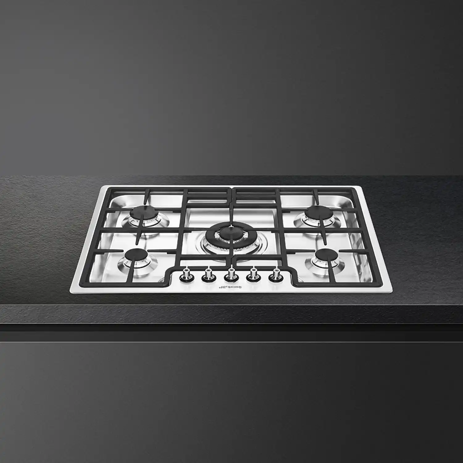 SMEG BUILT IN HOB 5 BURNERS 72 CM GAS CAST IRON FULL SAFETY STAINLESS STEEL PGF 75