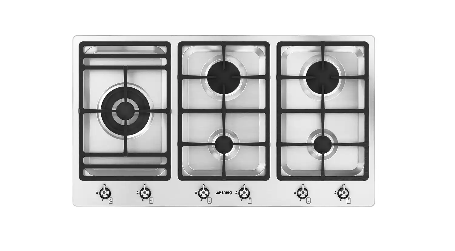 SMEG GAS HOB, 5 BURNERS, CAST IRON, 90 CM, STAINLESS STEEL - PS906-5
