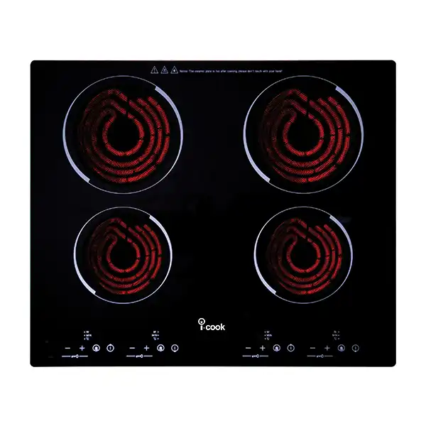 i-Cook Electric Built-In Hob, 4 Burners, 60 cm, Black Glass - BH5060C-F