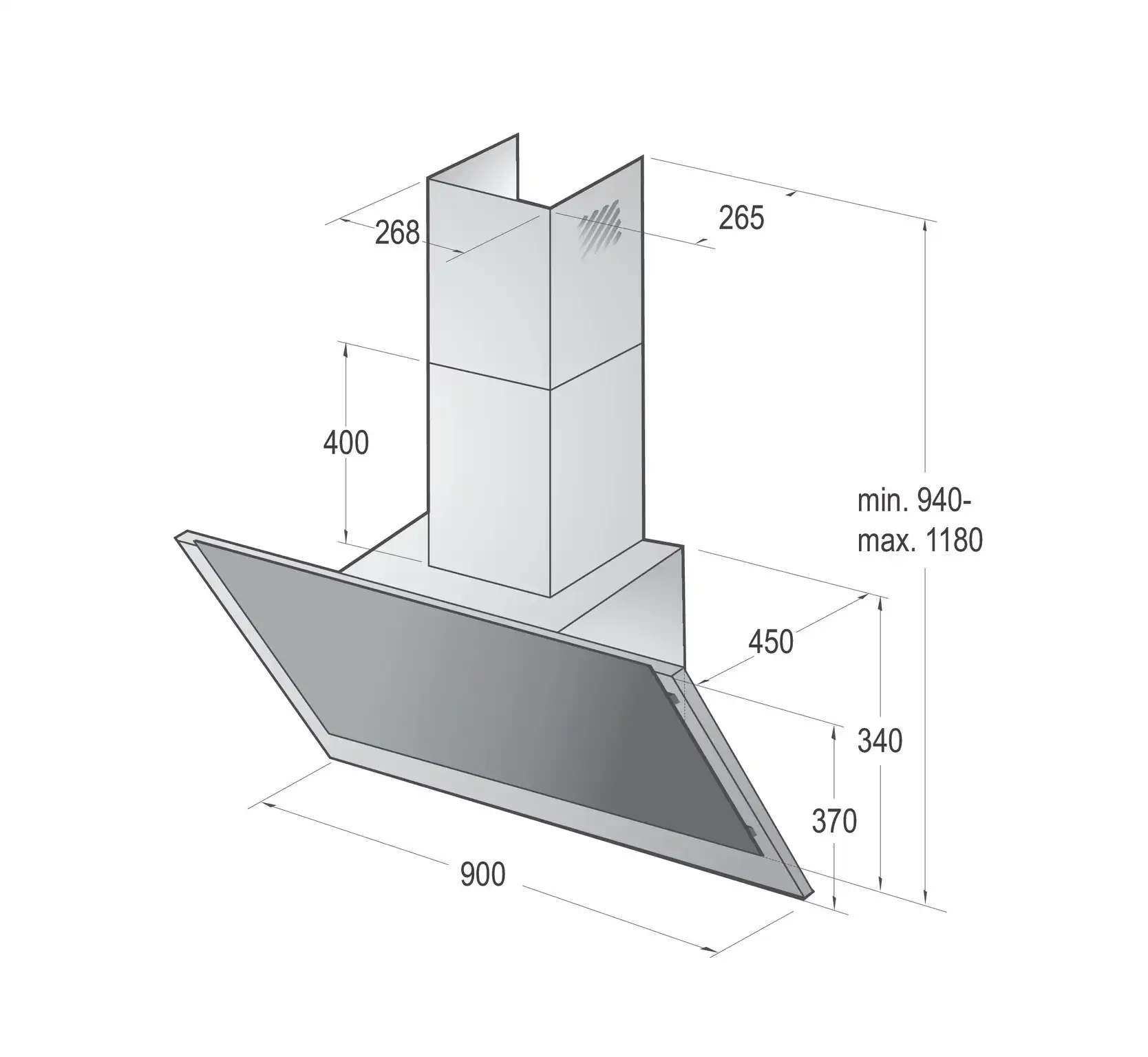 - Colour of housing/chimney: stainless steel and black glass / stainless steel