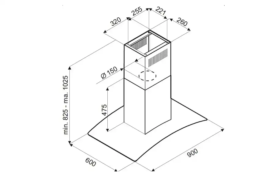 turboair Built-In Hood, 60 cm, Silver - MORAN LUX/60