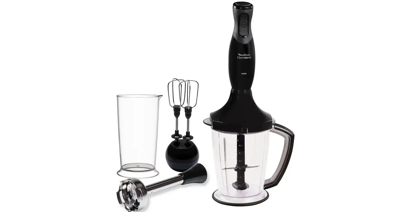 Hand Blender Moulinex Optiblend 1000W, 0.9L, 1.5L Chopper, Black - DDD1748EG1
