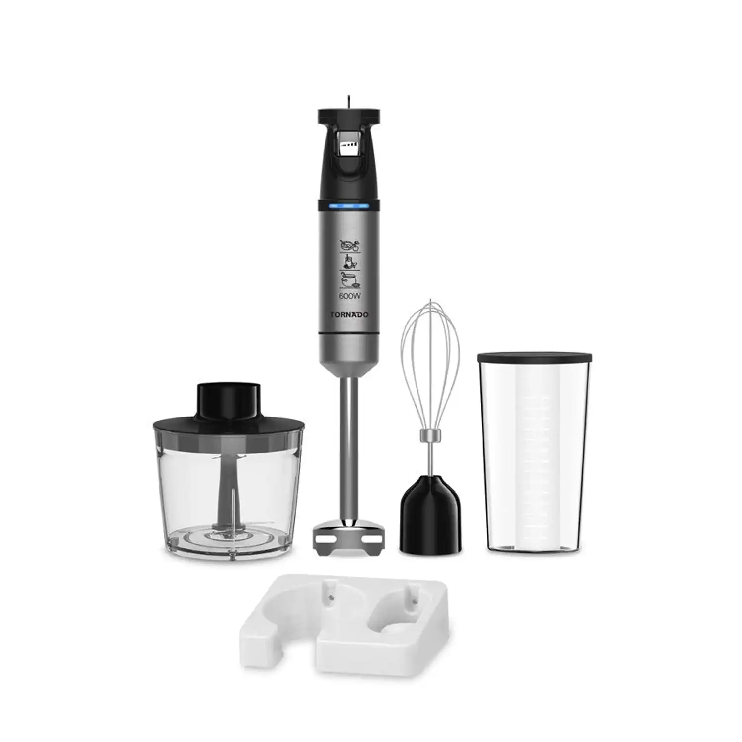 TORNADO Hand Blender 600 Watt, Stainless Steel Whisk, Black - THB-600W