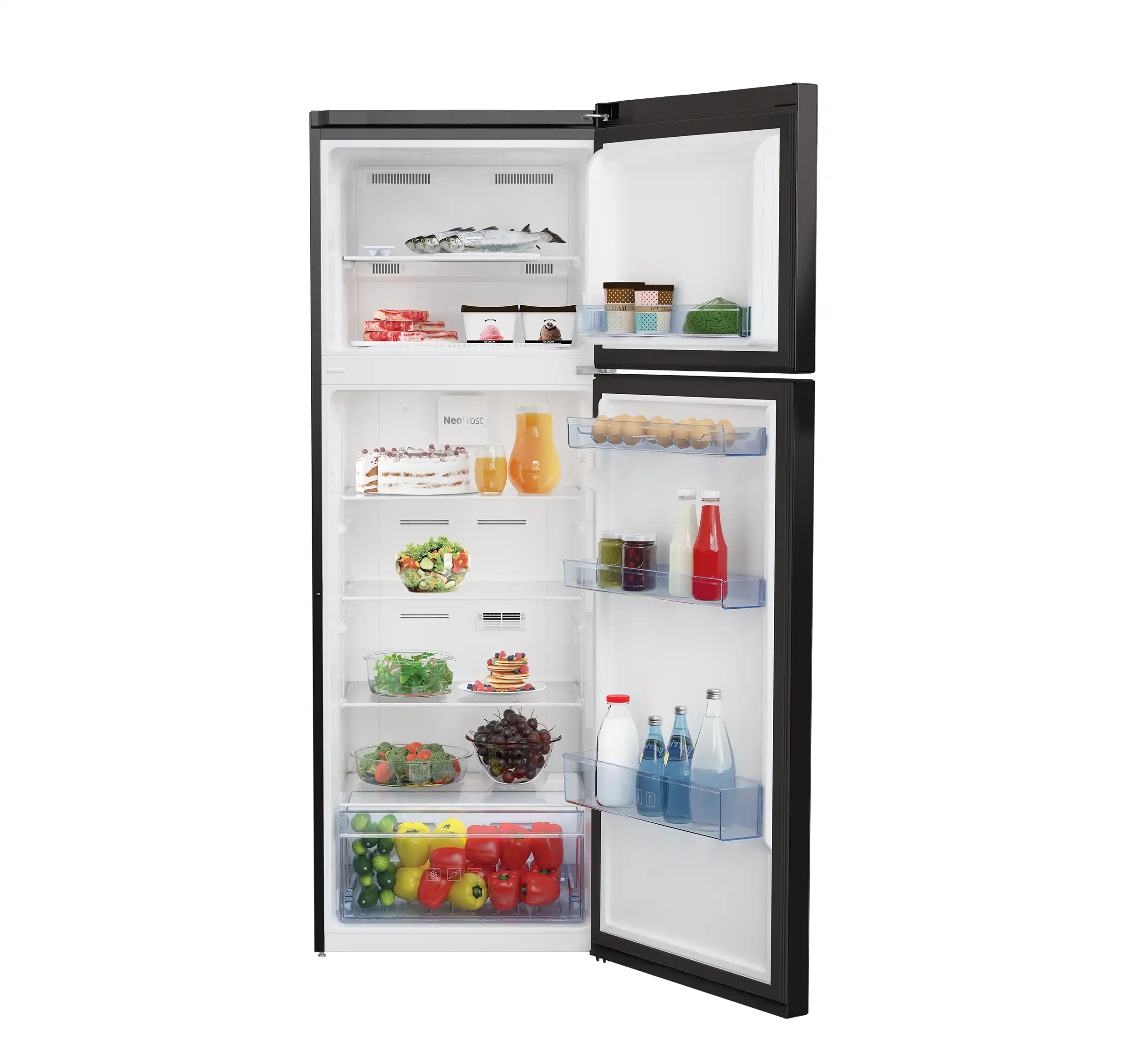 Beko Refrigerator, No Frost, 314 Liter, 2 Doors, Top Freezer, Black - RDNE340K22B