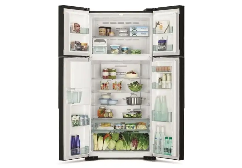 Hitachi Refrigerator, No Frost, 540 Liters, 4 Doors, Touch Digital Screen, Water Tap, Glass Black - RW760PUK7GBK