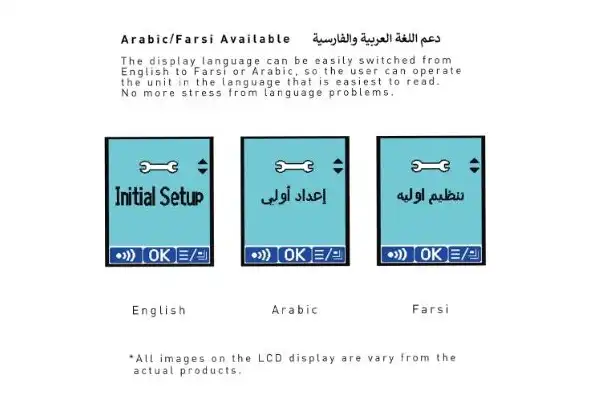 - 3-Language Available On LCD (Arabic, English, Persian)
