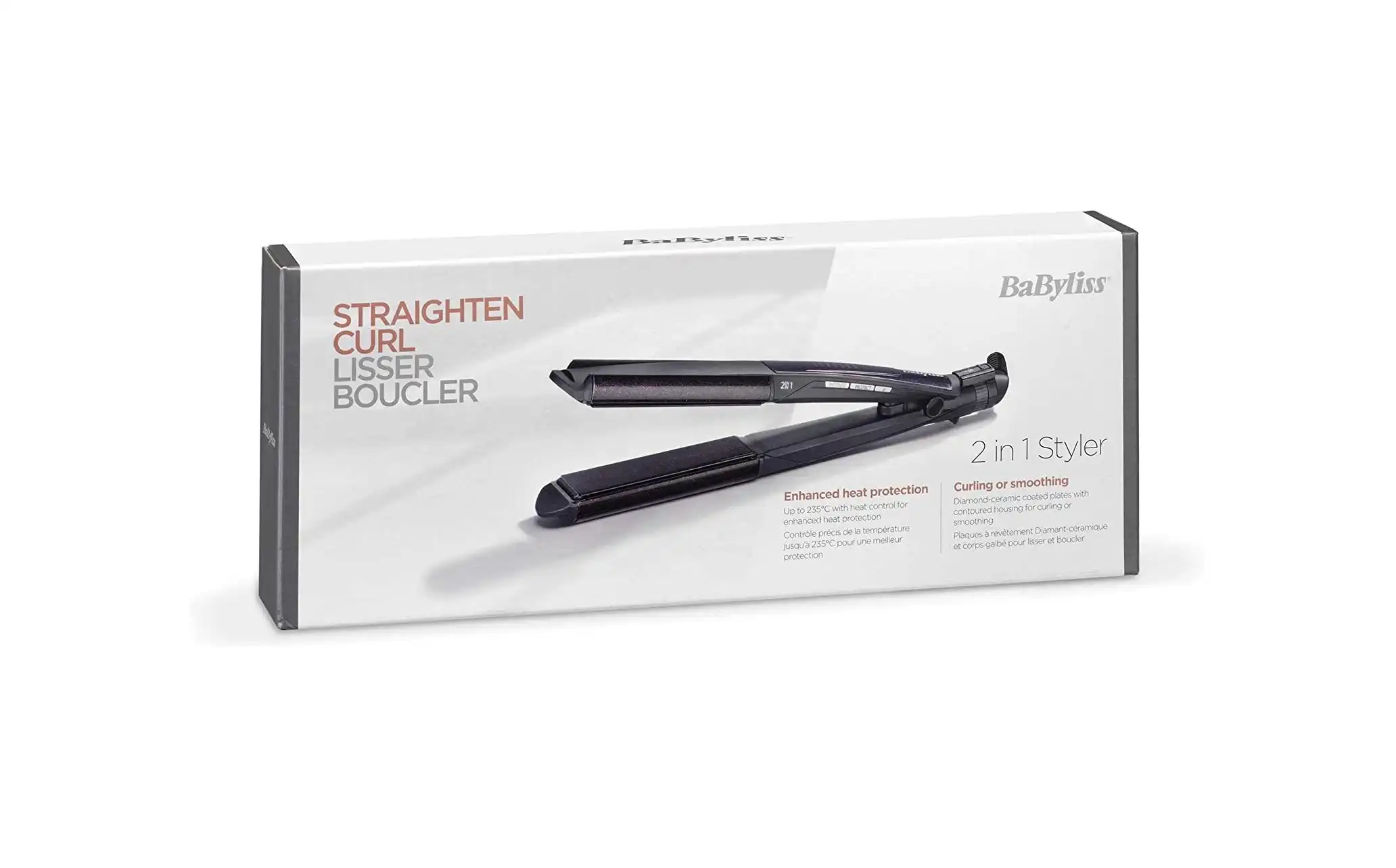 Babyliss 2 in 1 Wet and Dry Hair Curler & Straightener, Black - ST330E
