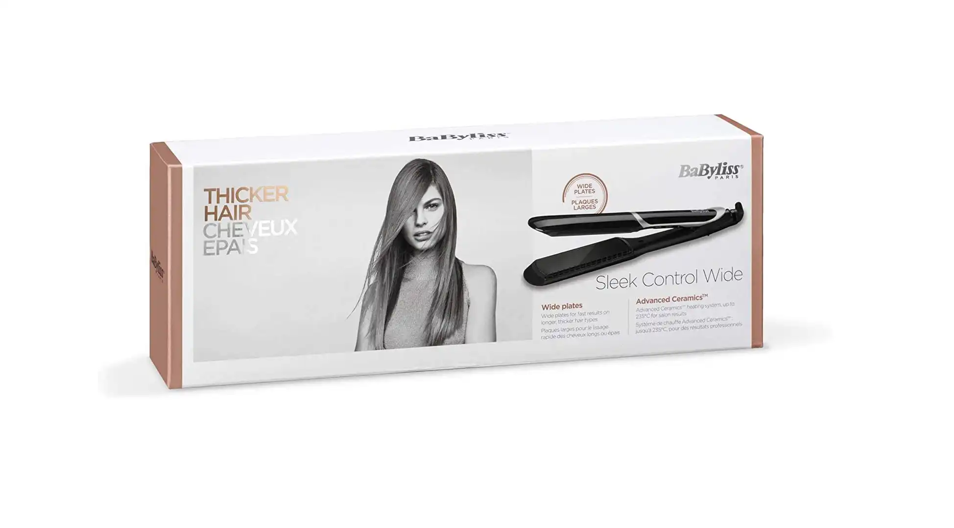 Babyliss Sleek Control Wide Hair Straightener, Black Silver - ST397E