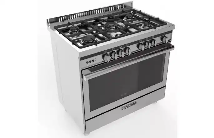 Glem Specialist Gas Cooke, 5 Gas Burners, Air Fryer, Full Safety, Cast Iron Pan Supports, 90 cm, Stainless Steel - ST9612RIFS