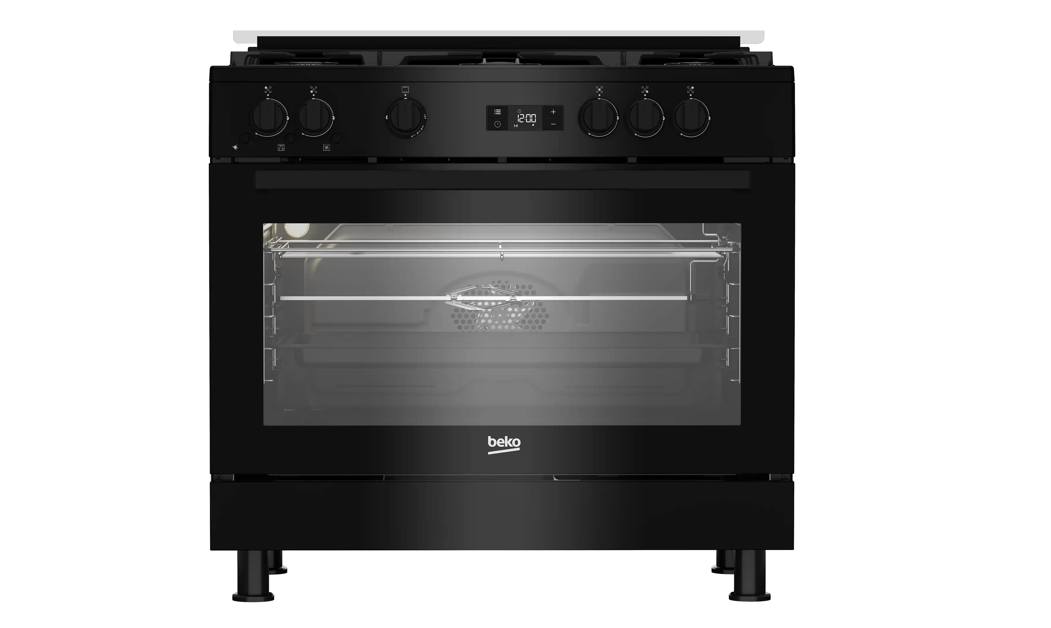 Beko Gas Cooker, Digital, 5 Burners, Full Safety, 90 cm, Black - GGR15325